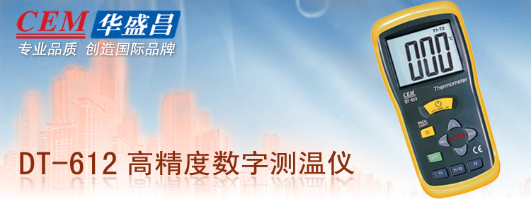 CEM DT-612高精度数字测温仪可用于电路主板、电子元配件、实验测温等大多数温度常规测量场合,高精确度、高分辨率及温差测量等功能满足您更多测温所需。 |