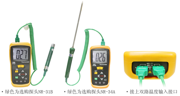 注意:以下2款绿色温度探头为CEM原厂配件,不在DT-612包装清单内,需另外选购,请知晓!