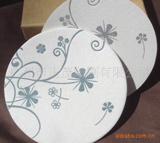 杯垫系列产品有;吸水纸杯垫,卡纸杯垫,软木杯垫,EVA PVC PP杯垫等……其中吸水纸杯垫采用纯德国/日本进口的原材料生产,(木浆,棉花,回收环保材料)。特点不易变形,吸水效果好,色彩靓丽可多次反复使用,是家居,宾馆,会所,酒巴,必用品。