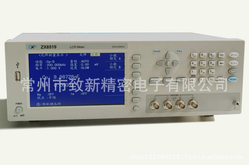 ZX8519系列数字LCR电桥是业界首台采用800*480超大彩色显示屏幕的新一代阻抗测试仪器,其0.05%(万分之五)的基本精度、20Hz ~ 300kHz的频率范围几乎可以满足元件与材料的一切测量要求。