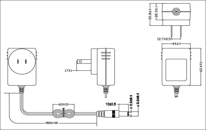 源变压器和整流电路组成,按其输出类型可分为交流输出型和直流输出型;按连接方式可分为插墙式和桌面