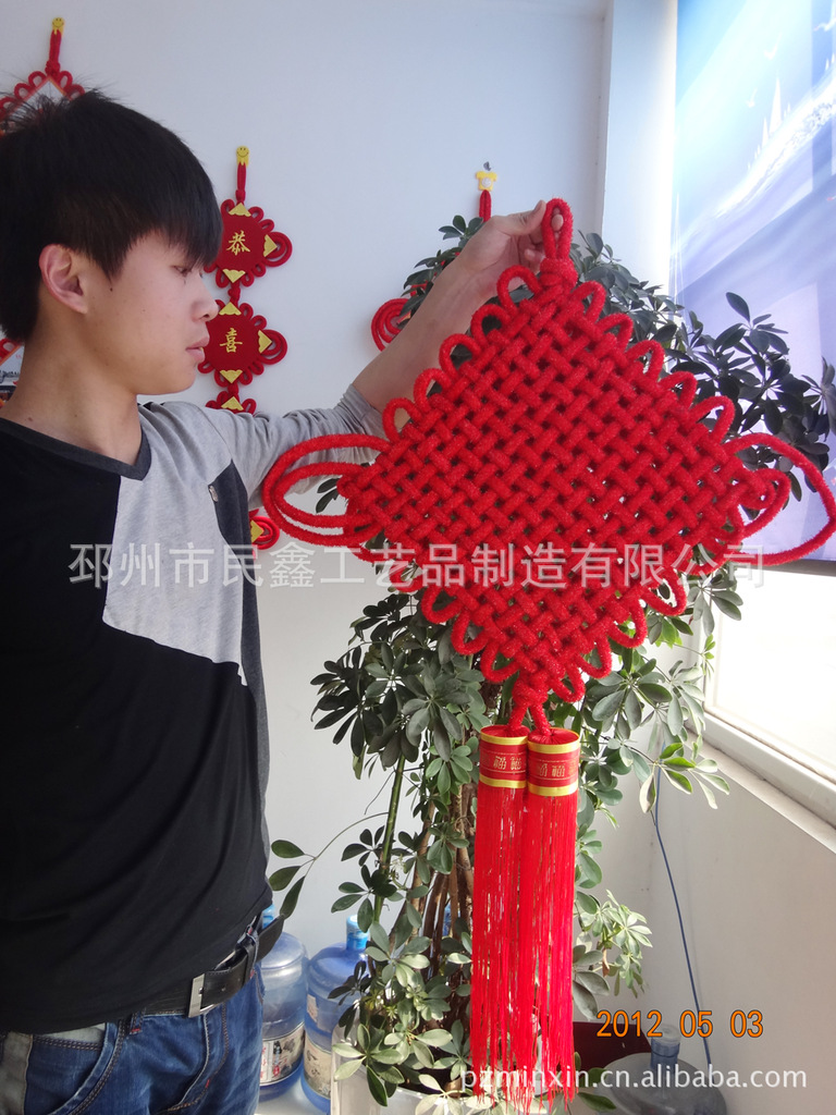 中国结是一种民间传统工艺,是中国特有的手工绳结艺术,全红棉锦纶布编制,制作精美、工艺精良、图案逼真、非常的喜庆大方。可用于中国特色礼品,过年过节,开业庆典,婚庆典礼,宾馆酒店,家居装饰,室内装饰品,风水挂饰等