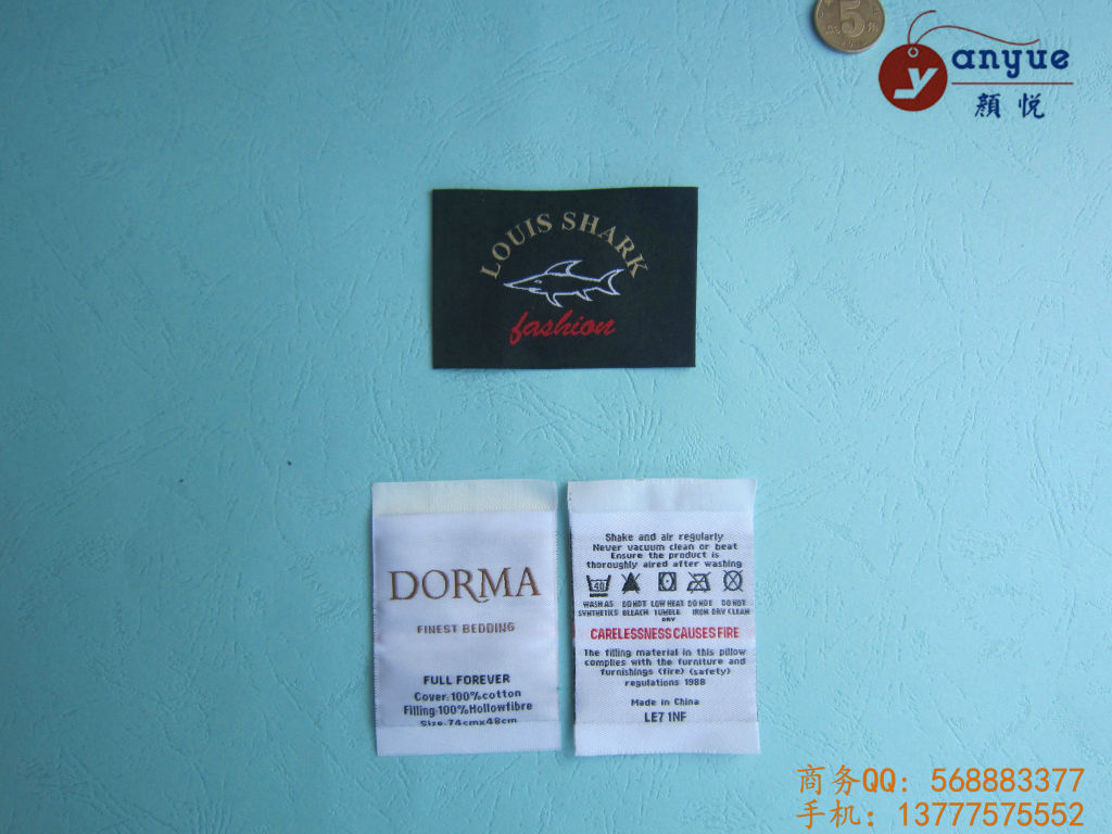 手机:13777575552 18668093355 13396516633电话:0571-89270919传真:0571-87830187商务QQ:568883377 1376371765 531009185关于我们 杭州颜悦服装织唛是一家集商标设计、织造、印刷于一体的,专注于研发和生产商标、织唛、印唛、吊牌、彩卡、织带、丝网印、贴纸、胶袋、热转印等一系列辅料的现代化企业。该辅料广泛应用于服装、家纺、箱包、鞋帽、玩具、手袋、领带等产品上。产品已经通过SGS通标标准技术服务有限公司的ISO9001:2008国际质量体系认证和Oeko-Tex Standard 100 认证,产品质量符合安全出口环保标准!
