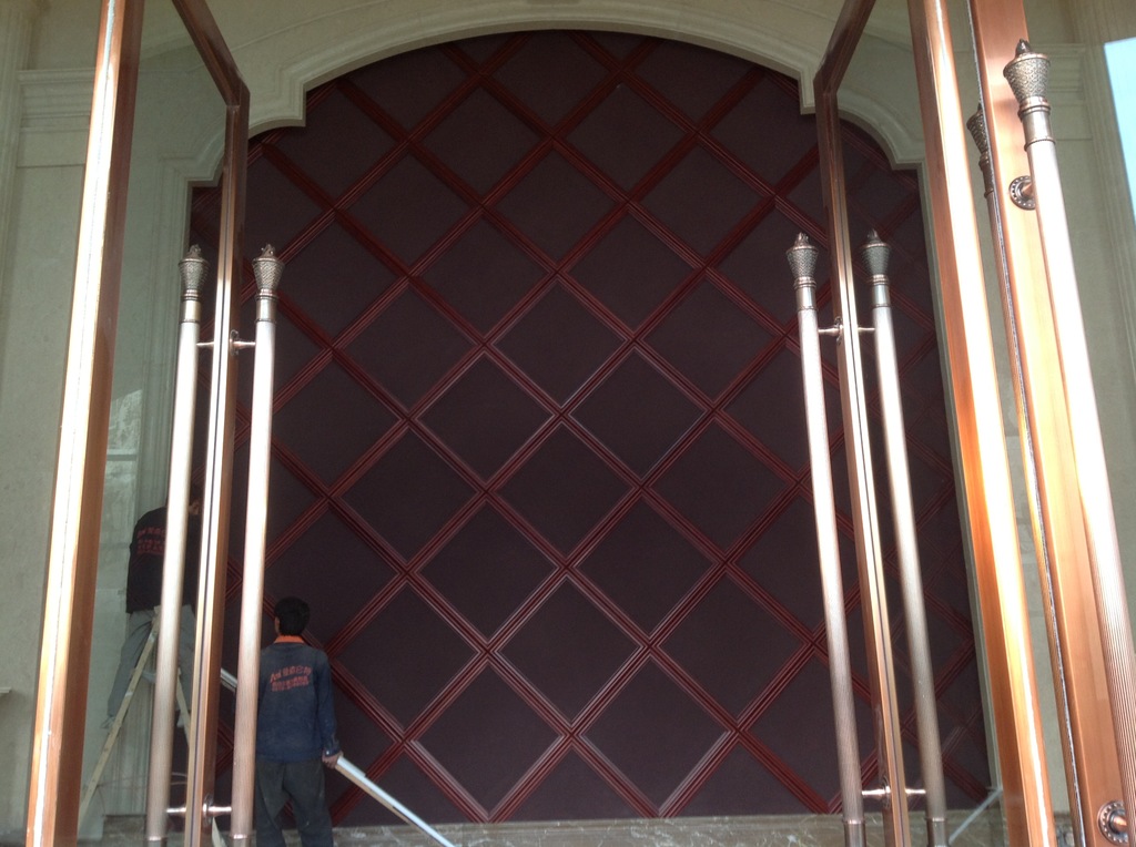 隔热性:植绒钢板的热风传导在风速9m/s的设定条件下为6.17w/(平方.K),被认为与石板有大致同等隔热性能。Heat wind conduction of flocking steel is 9m/s at thespeed of 9m/s.