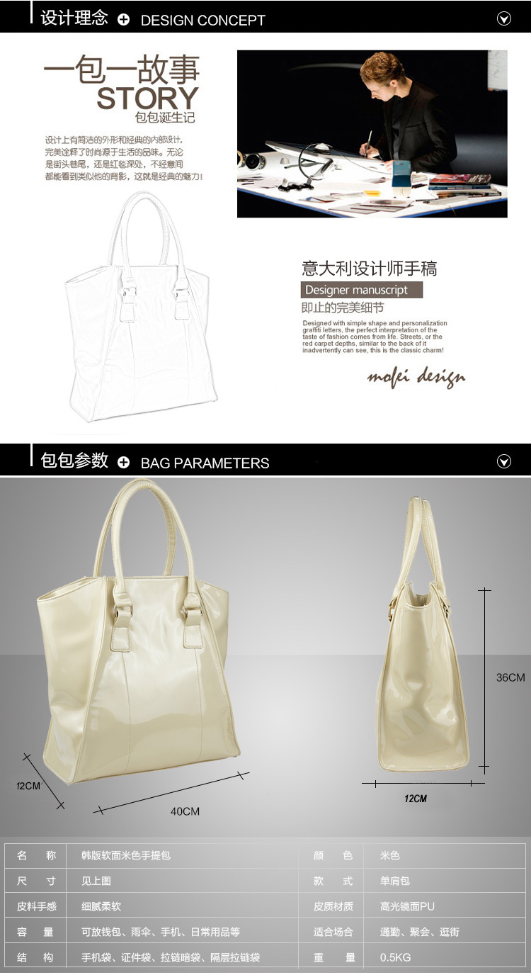 杭州工厂生产漆皮高光镜面PU竖款方形手提包职业女包厂家直销