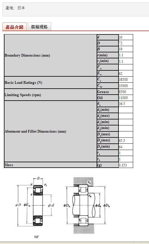 NF306W NSK轴承
