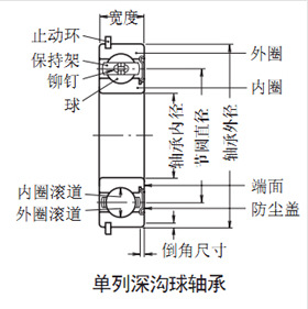 单列深沟球轴承内外圈均有深沟型滚道,深沟型的滚道、加上滚道与钢球之间有极好的密合度,使得该类轴承在承受径向负荷的同时,还可以承受一定的双向轴向负荷。当适当加大轴承的径向游隙后,可增加承受轴向负荷的能力,有时可用来代替高速运转的角接触球轴承。