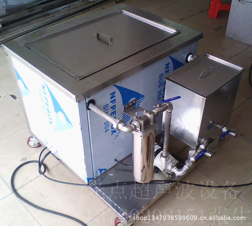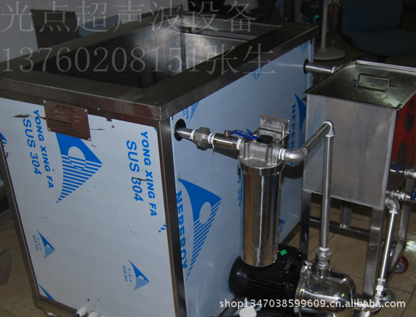 该清洗机主要由超声波发生器、换能器、粗洗槽、精洗槽、储液隔,循环过滤系统自动温控系统、机架等组成。