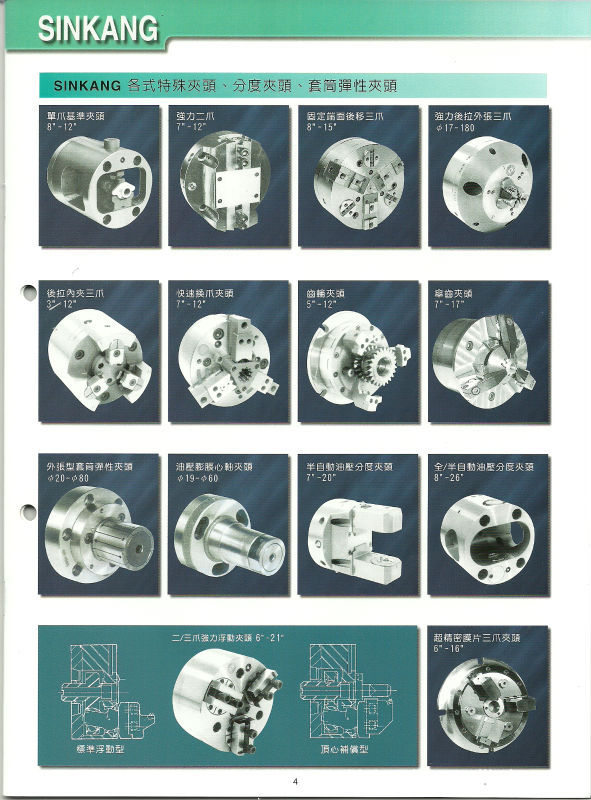 我公司是以下品牌的大陆总代理: 日本 HOWA 丰和、德国 MARQUART 、以色列 P.M.L-P.A.L 、韩国SEOAM、 日本KOYO、韩国SINKANG等多种品牌!台湾自制品牌日新山川(YAMAWKAWA) 。供应三爪中空/中实卡盘、二爪卡盘,偏心补偿卡盘、长行程卡盘、快速换爪卡盘、三爪高速超大孔、中空/中实油缸、油压中心架、汽车钢圈夹头、等。前推式/后拉式:弹性筒夹和橡胶筒夹等。固定端面后移三爪、外张型套筒弹性夹头、油压膨胀心轴夹头、半自动/全自分度卡盘,球阀/十字阀等阀门加工卡盘等。大型立、卧油压夹头,各式手动夹头、大孔径卡盘