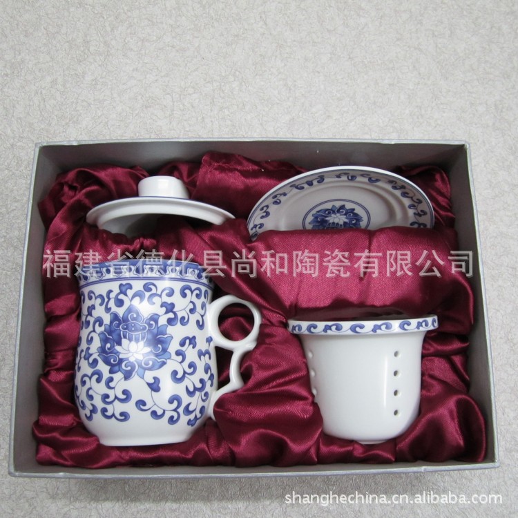 尚和道厂家直销经典青花系列富贵牡丹陶瓷四件杯SH-87028