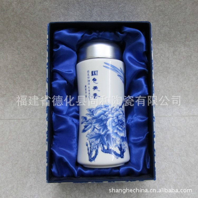 尚和道厂家直销高档商务礼品青花陶瓷国色天香保温杯SH-87068
