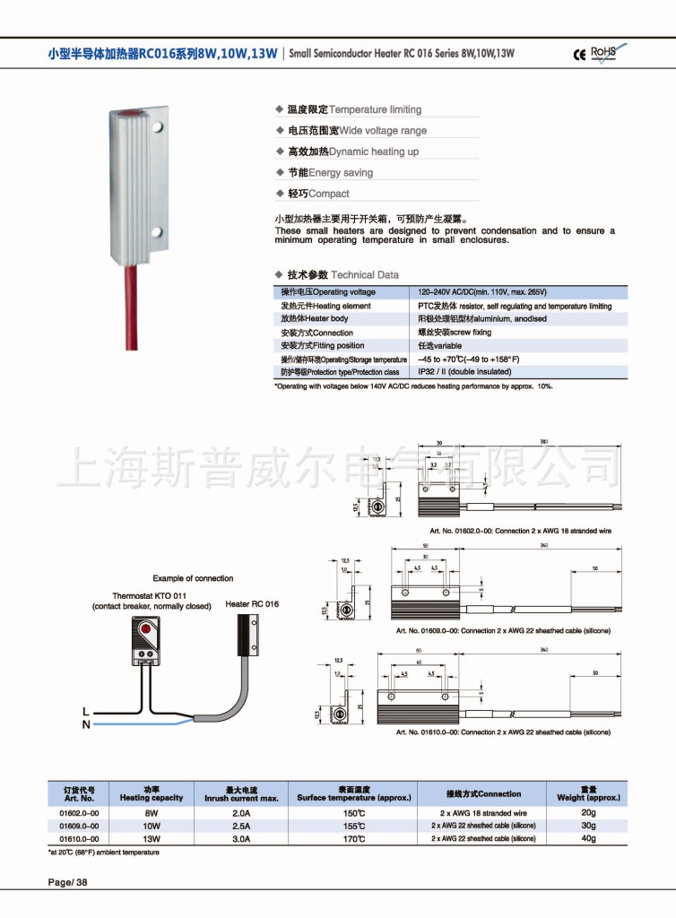 电热器使用于开关箱当中预防产生凝露,防止温度降至零下或降至最顶设定值。
