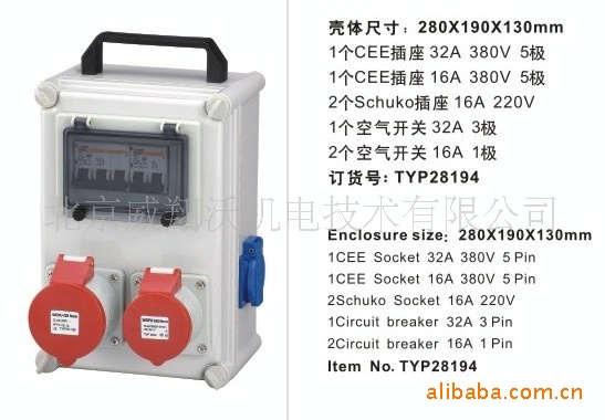 TYP系列IP44防水电箱,采用高分子树脂合成钢制成,具有较强的抗冲击能力及耐温度变化能力。产品为适合广大用户的需求,设计有便携式及挂墙式两种规格。产品具有阻燃,抗老化,防水溅等优点。适合环境恶劣的输配电源,展览馆、体育馆、工厂的输配电源,户外灯光及音响流动电源输配,舞台灯光及音响流动电源输配,港口码头及建筑工地流动电源输配等多方面领域使用。