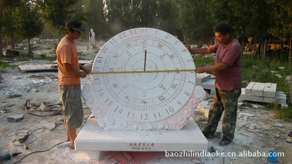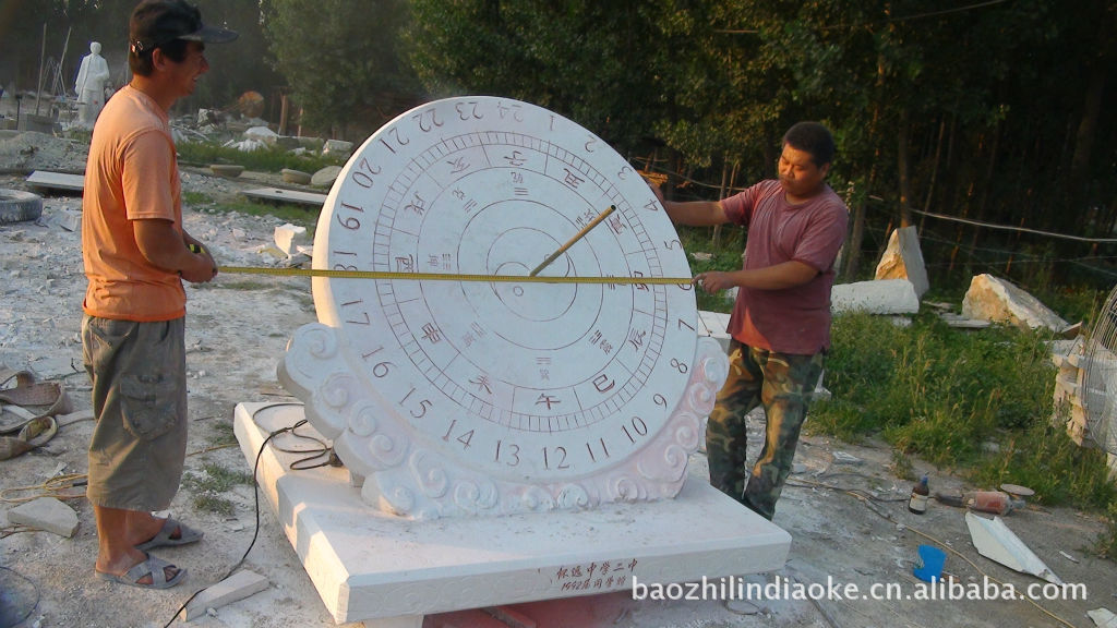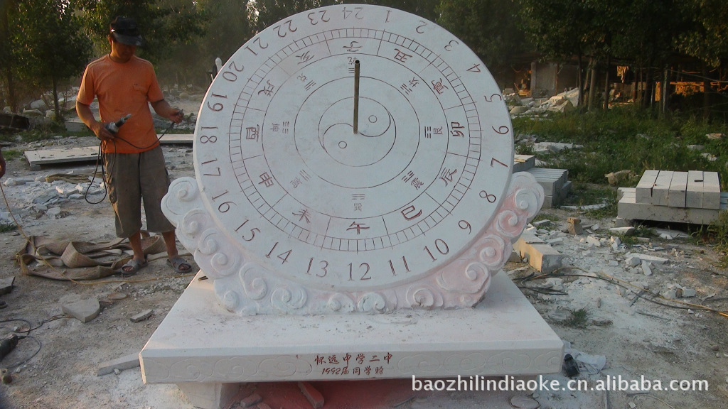 利用太阳投射的影子来测定时刻的装置。又称“日规”,是我国古代利用日影测得时刻的一种计时仪器。通常由铜制的指针和石制的圆盘组成。铜制的指针叫做“晷针”,垂直地穿过圆盘中心,起着圭表中立竿的作用,因此,晷针又叫“表”,石制的圆盘叫做“晷面”,安放在石台上,呈南高北低,使晷面平行于天赤道面,这样,晷针的上端正好指向北天极,下端正好指向南天极。在晷面的正反两面刻划出12个大格,每个大格代表两个小时。当太阳光照在日晷上时,晷针的影子就会投向晷面,太阳由东向西移动,投向晷面的晷针影子也慢慢地由西向东移动。于是,移动着的晷针影子好像是现代钟表的指针,晷面则是钟表的表面,以此来显示时刻。由于从春分到秋分期间,太阳总是在天赤道的北侧运行,因此,晷针的影子投向晷面上方;从秋分到春分期间,太阳在天赤道的南侧运行,因此,晷针的影子投向晷面的下方。所以在观察日晷时,首先要了解两个不同时期晷针的投影位置。世界上最早的日晷诞生于六千年前的巴比伦王国。中国最早文献记载是《隋书·天文志》中提到的袁充于隋开皇十四年 公元574年 发明的短影平仪 即地平日晷 。赤道日晷的明确记载初见于南宋曾敏行的《独醒杂志》卷二中提到的晷影图。赤道日晷通常由铜制的指针和石制的圆盘组成。铜制的指针叫做“晷针”,垂直地穿过圆盘中心,晷针又叫“表”,石制的圆盘叫做“晷面”,安放在石台上,呈南高北低,使晷面平行于天赤道面,这样,晷针的上端正好指向北天极,下端正好指向南天极。在晷面的正反两面刻划出12个大格,每个大格代表两个小时。当太阳光照在日晷上时,晷针的影子就会投向晷面,太阳由东向西移动,投向晷面的晷针影子也慢慢地由西向东移动。于是,移动着的晷针影子好像是现代钟表的指针,晷面则是钟表的表面,以此来显示时刻。这种利用太阳光的投影来计时的方法是人类在天文计时领域的重大发明,这项发明被人类所用达几千年之久,然日晷有一个致命弱点是阴雨天和夜里是没法使用的,直至1270年在意大利和德国才出现早期的机械钟,而中国则在1601年明代万历皇帝才得到二架外国的自鸣钟,清代时虽有很多进口和自制的钟表,但都为王宫贵府所用,一般平民百姓还是看天晓时。所以彻底抛却日晷,看钟表知辰光还是近现代的事。