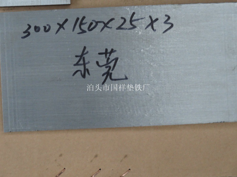 斜铁是机械设备安装的重要辅助材料,广泛应用于石油设备,化工设备,煤炭采掘设备,纺织设备,电厂设备,电厂机组以及大型机械设备的调整。斜铁最早采用铸锻件的加工生产,即用钢板加温气锤锻打或采用铸钢件(铸造),这样的工艺制造的斜垫铁四个角成圆弧状。外形尺寸难以保证。但是经过气锤的击打密度增加,使其拥有的更好韧性及硬度。但是外观的质量和光洁度以及平整度的不足难以保证设备调整的质量。当时为达到理想的平面度和光洁度采用的铣床加工或刨床加工的工艺。铣床加工就是把钢板气割成所需斜铁的外型尺寸,再由铣床铣削成所需的斜度,这种斜铁外观美观,精度较高,光洁度可以随意控制。但有五分之二的原材料浪费掉了。使其价格比较高。2008年初我公司通过长时间的实验创造的用锯床加工的工艺,自行设计了工装,采用一分为二的加工工艺,达到了斜铁行业最小损耗的可喜成果。锯床加工的斜铁外观美观,四角均为直角,平面度好,光洁达到6.3基本满足一般的设备的安装使用,另像汽轮机组等精密的设备,可以锯床加工完后,再经磨床粗磨一下。即可达到理想的精度。因为锯床加工的工艺大大节约的材料成本,使其成为目前为止最为节约环保的加工的生产方法。