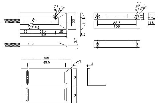 1.特点:卷帘门磁主要用于车库,仓库,工厂,店铺等复杂环境下的报警信号输出的工作,一般采用铝合金和锌合金材质,可以工作于恶劣环境,抗震效果强,耐用,不易损坏,表面银灰色电镀防止产品氧化,具有美观的效果,线边采用梯形设计可以避免被铲车等损坏,不锈钢的保护管可以增强产品的安全性和可靠性,支架可以调节卷帘门上铁与地面开关的感应距离。