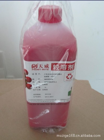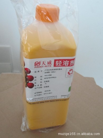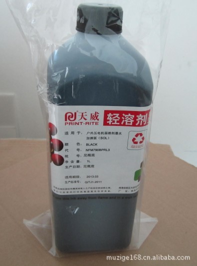 全新“天威”压电式户外轻溶剂墨水,真正好用又便宜的环保墨水!画质鲜艳,吸引眼球!专家说,鲜艳的色彩最轻易让人在第1秒钟内产生记忆!“天威”压电式户外轻溶剂墨水,秉承“天威”墨水一贯的宽广色域,色彩鲜亮饱满,画质表现力强,精度高!干燥快,打印速度成倍提升!添加特殊助剂,附着力强,即打即干,适合自动收卷打印,更快更方便!防水、抗晒、耐刮擦!严格控制粒径大小,使画质无颗粒感,耐刮擦;通过反复模拟户外环境,使墨水具有极高的耐候性,有效抵抗紫外光的照射和雨水腐蚀,印迹保存时间更长!安全无毒、绿色环保!不含甲苯、二甲苯、环己酮等毒性溶剂,安全无毒,可长期放心使用!兼容性强,适应机型广!在MIMAKI/MUTOH/ROLAND打印机以及EPSON打印头的改装机、国产机上打印,打印过程顺畅无阻,尽不堵头!