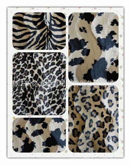 短毛绒印花面料:斑马纹,奶牛纹,老虎纹等动物花纹
