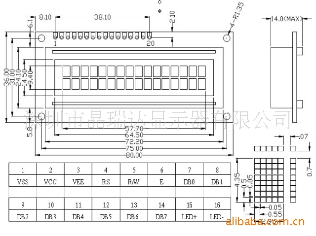 | 外观尺寸 | 80x36x14.5mm | 驱动IC | SPLC780D-01 |