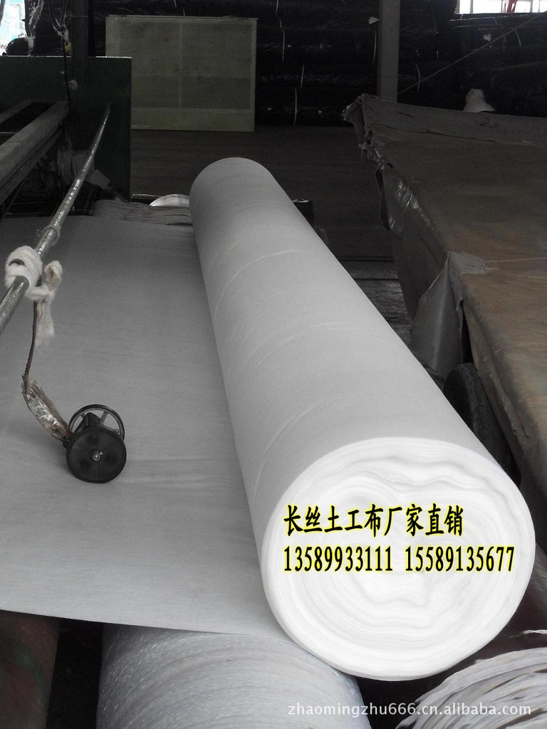 土工布,又称土工织物,它是由合成纤维通过针刺或编织而成的透水性土工合成材料。成品为布状,一般宽度为4-6米,长度为50-100米。土工布分为有纺土工布和无纺土工布。土工布具有优秀的过滤、排水、隔离、加筋、防渗、防护作用,具有重量轻、抗拉强度高、渗透性好、耐高温、抗冷冻、耐老化、耐腐蚀。作用