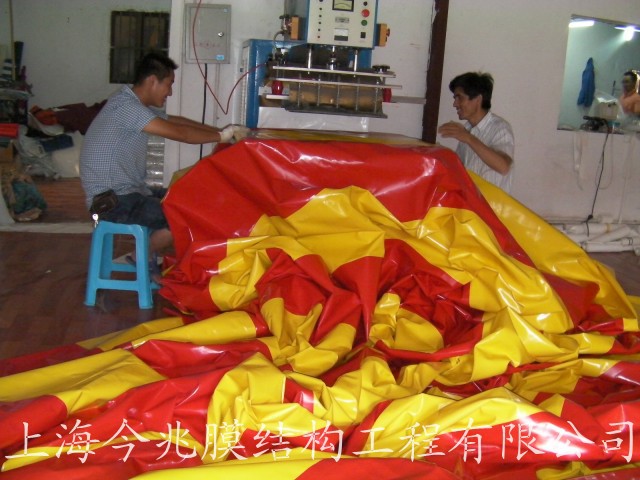我厂有高频膜布焊接机5台,缝纫机8台,可以日焊接2000平方膜布,加工篷布2000平方.也可以来图加工,按要求制作,尺寸准确。物流发货,操作方便。