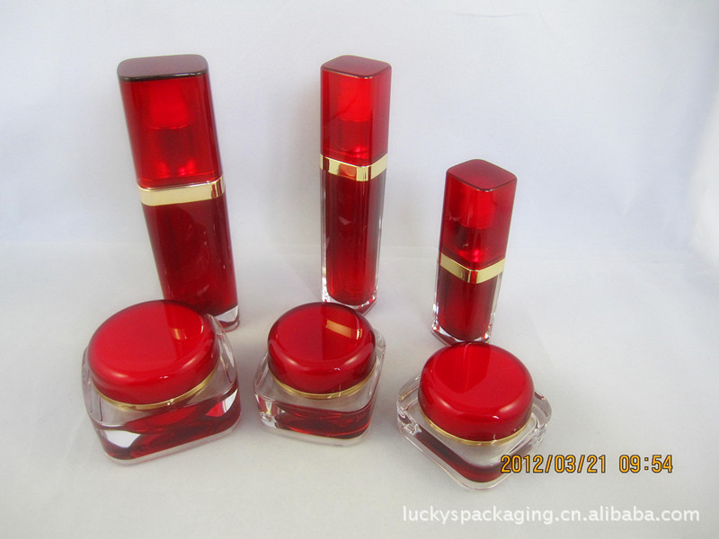 主要原材料:亚克力瓶身和盖子,PP内胆,ABS肩套,电化铝乳液泵或喷雾泵(乳液瓶)