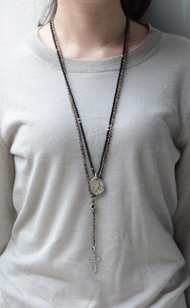 SMOKEY ROSARY LAYERING NECKLACE