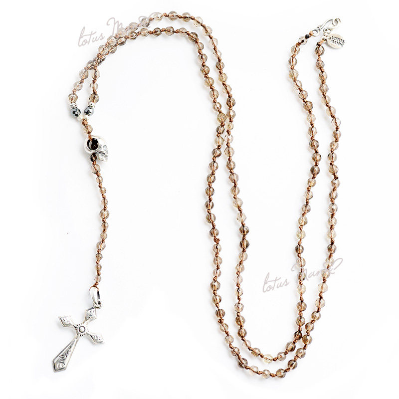 | 宝贝名称 | 路塔斯曼天然烟晶欧美长款十字架骷髅纯银ROSARY念珠项链毛衣链新 |