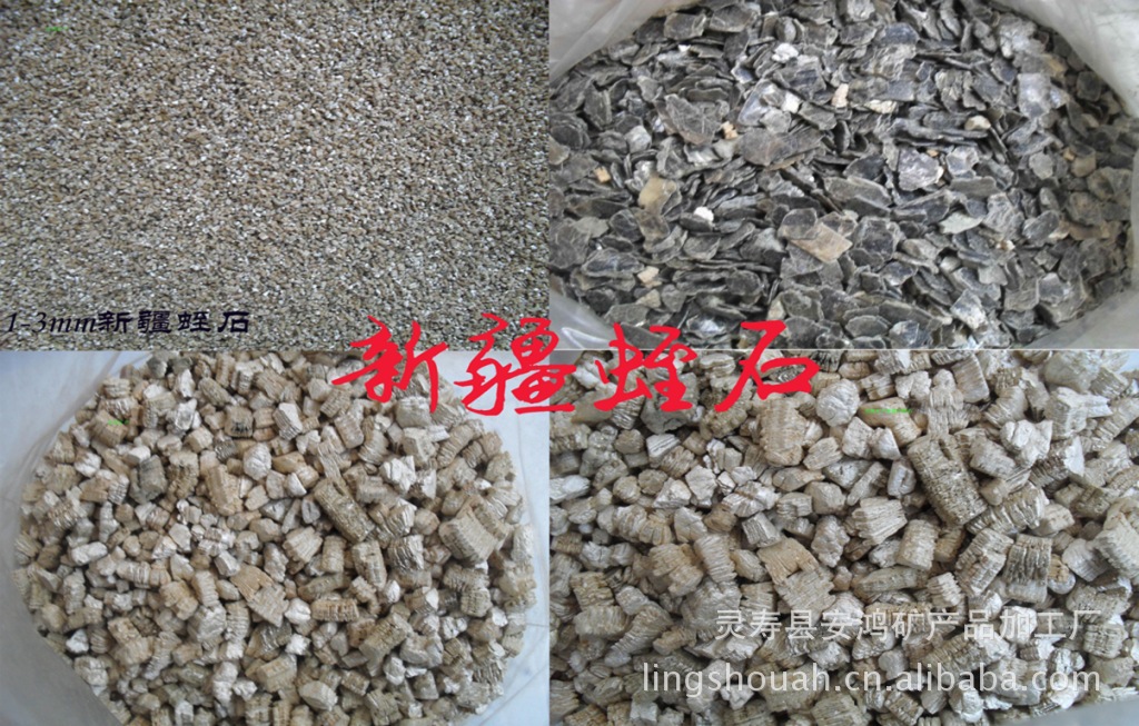 石的化学式为(Mg,Ca)0.7(Mg,Fe,Al)6.0[(Al,Si)8.0](OH4.8H2O)。蛭石原矿经过高温焙烧其体积可迅速膨胀8-20倍,