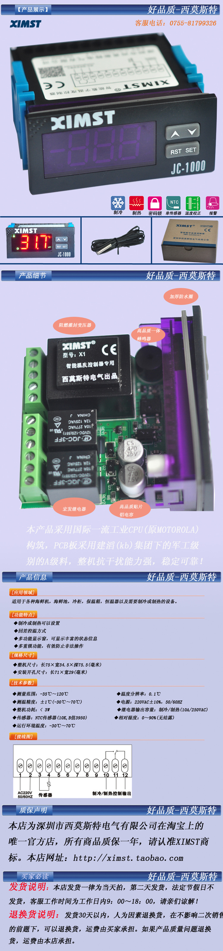 ◆测温精度:±1℃(-30℃~70℃) ◆电源:220VAC±10%,50/60HZ