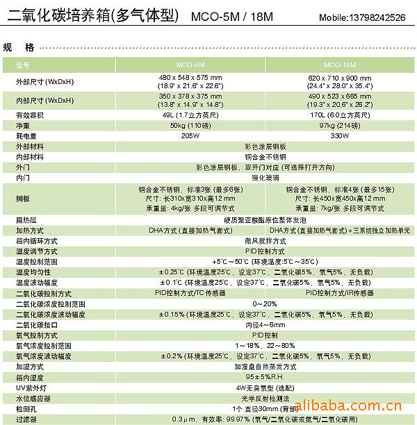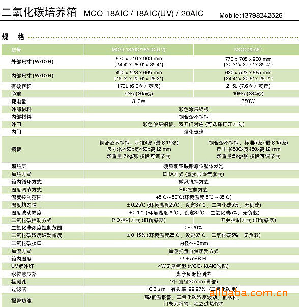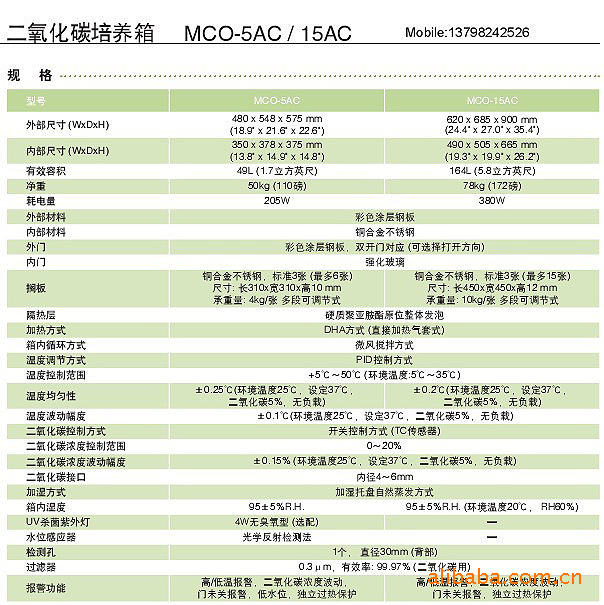 报警设备 | 温度报警、CO2浓度报警、上限温度报警、箱门报警 |