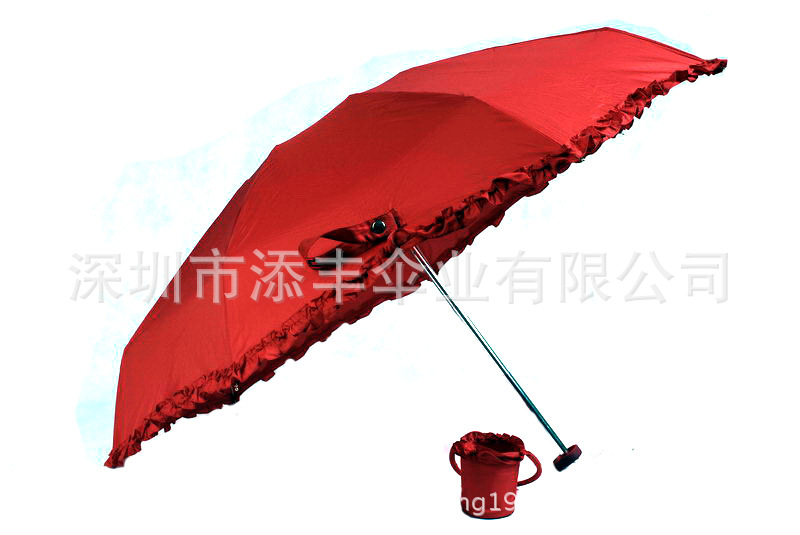 超细带蕾丝花边 韩版防紫外线遮阳伞 三折伞