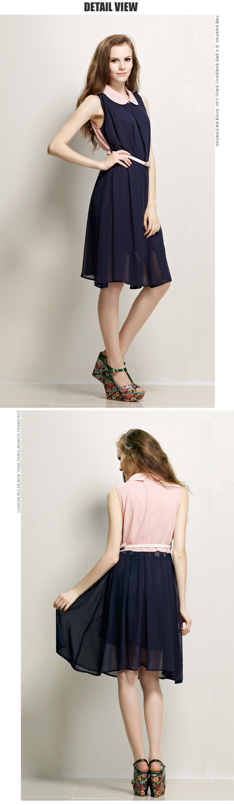 一件代发新款韩版连衣裙翻领中袖雪纺修身假两件包臀连衣裙 B8