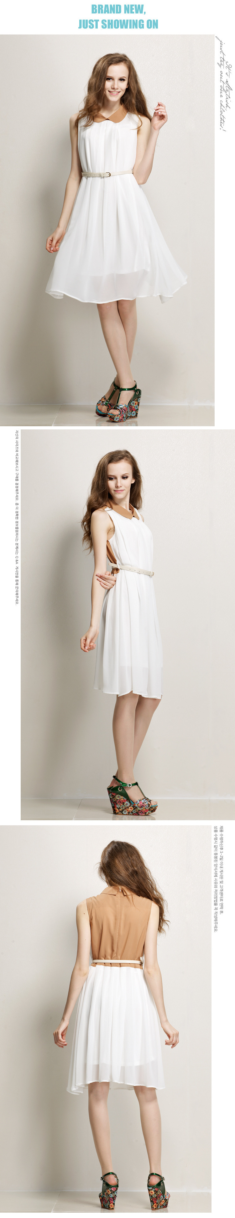 一件代发韩版雪纺连衣裙 韩版假两件收腰时尚黑白 短袖连衣裙B79