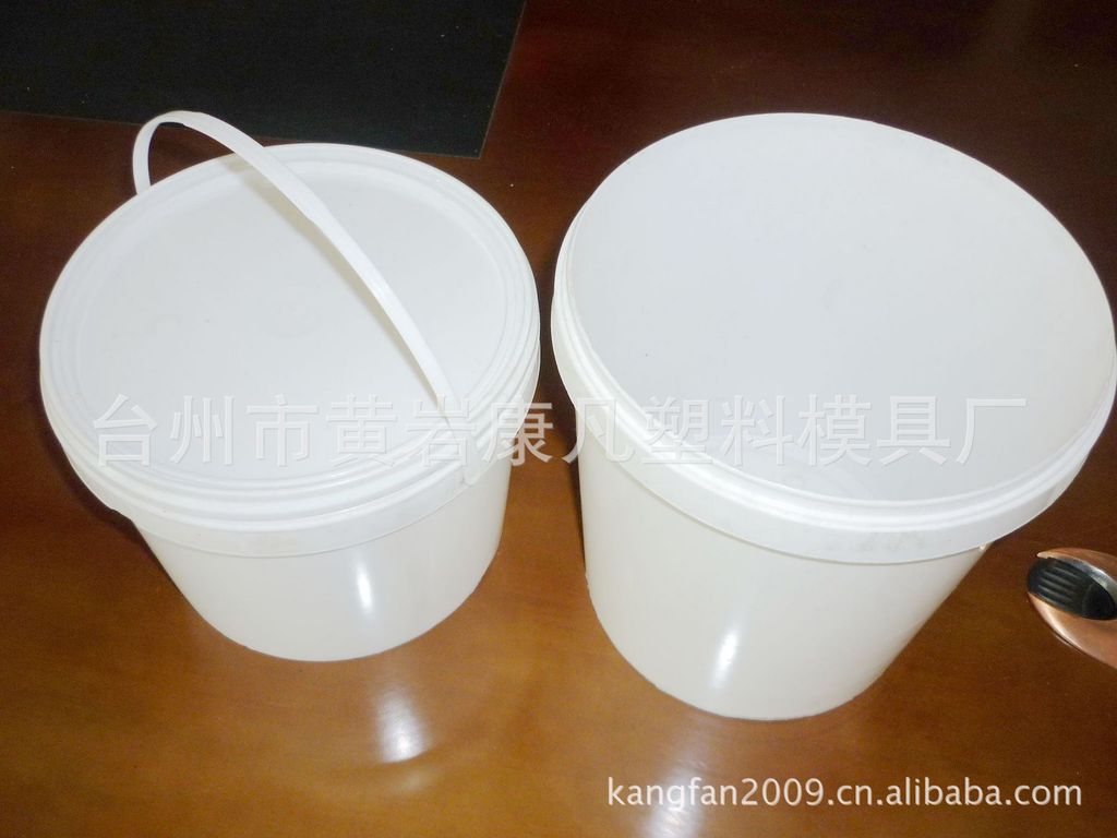 浙江省台州市黄岩康凡塑料模具厂专业开发制造涂料桶注塑模具,本厂具有专业制造设计塑料桶注塑模具的经验和历史,产品广泛应用于油品包装,涂料,油漆,农药,化工,固体粉剂,及食品等行业,本厂开发的塑料桶模具有以下特点:一、模具钢材选料精良,本厂与国内知名钢厂有长期合作关系,所用钢材均为原厂优等钢材,所用钢材均先经过热处理及一级超声波探伤,绝对保证材料品质并提纲原厂质保书。二、模具设计合理,产品同心度好,不偏心,模具型芯和型腔均为整体一次加工成型。三、产品密封性能优良,本厂模具制造经验丰富,对产品密封性能经验独到,模具出厂前,所制产品装满水倒放和侧放48小时不渗漏。25L桶 桶重750克,桶厚为1.8 模具保养:模具保养比模具维修更为重要,模具维修的次数越多,其模具的寿命越短,模具维修的次数越少,其模具的寿命就会越长。模具保养主要分三点:1,模具的日常保养,各种运动部件如顶针,行位,导柱,导套加油,模面的清洁,运水的疏通,这是模具生产时每天要维护的。2,定期的保养,定期的保养包括长保养之外还要排气槽的清理,困气烧黑位加排气,损伤,磨损部位的修正等。3,外观保养,模胚外则涂油漆,以免生锈。下模时,动模定模应涂上防锈油。模具保存时应闭合严实,防止灰尘进入型腔。