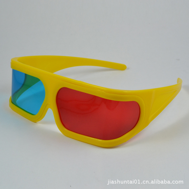 眼镜镜架为塑料材料制作,镜片为高档的树脂制作比纸质立体眼镜耐用。(可以在液晶显示器上用,也可以在电视上观看红蓝立体电影,如果条件符合还可以打所有的3D立体游戏)