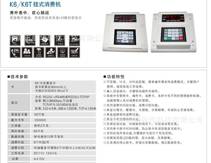 3.系统中有管理卡、操作卡、消费卡,各种卡有不同的管理操作权限,加强管理人员对消费机的管理
