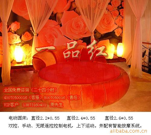 电动圆床:手动、无线遥控电机调速上下运动、 性爱凳、吊杠、无重力性爱秋千、红绳、旋转秋千、性爱球,配有: MP3、功放、音响系统(内存高雅、景物、女人浪声等曲目)。