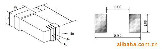 三. 0603快断系列保险丝产品尺寸及推荐的焊盘尺寸(mm)