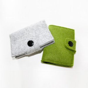 此种包选用的毛毡是采用化纤通过刺针的穿刺作用将蓬松的纤维网加固成紧密弹性好的毡布。毛毡具有强度高、韧性好、结构紧密、富有弹性、环保无污染、是制作卡包的最佳材料。广泛用于箱包的制作。