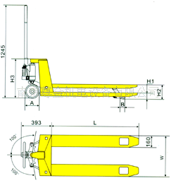 手动液压搬运车简述:手柄包胶,操作轻便。 有安全阀,可防止过载。 方向转角180度,转弯半径小。 带导向轮,出入托盘更加自如。 免维护、易拆卸、使用寿命长。 泵与油缸均为柱塞式,泵支点为闭式结构,刚度大。 油泵钢座为液压集成一体化设计,采用进口密封圈,密封防漏可靠。