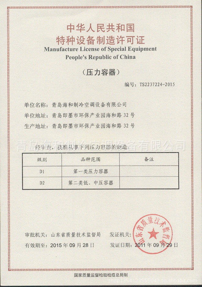 产品标准 | GB150-2011, TSG R0004-2009 | 设计使用年限 | / |