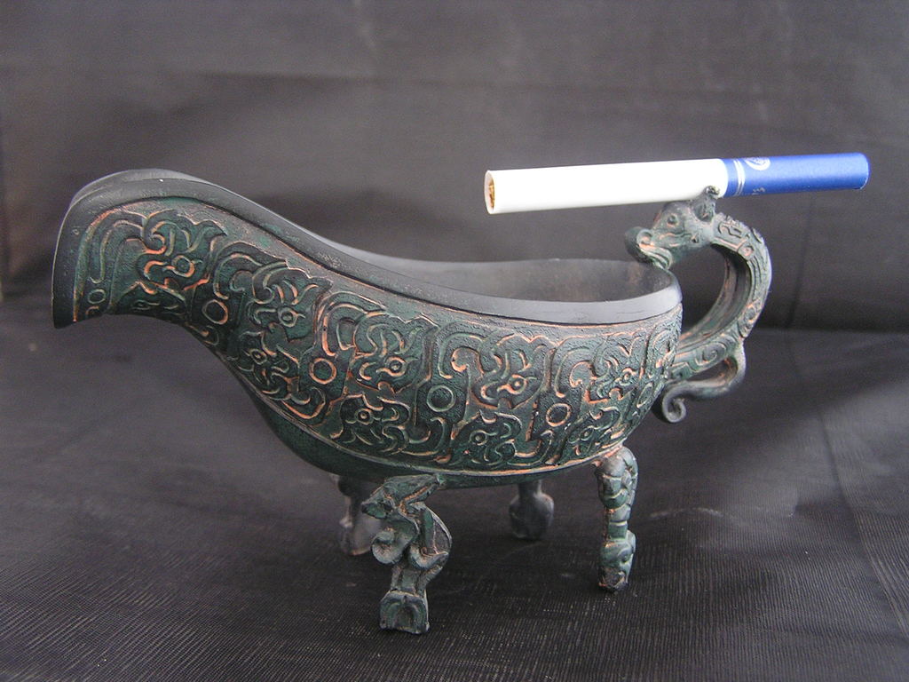 - 另外,作为创意礼品的一份子,这款仿古酒杯化身为烟灰缸,广受欢迎。杯耳祥龙的耳朵构成的角度,能放下一支普通香烟。不受拘束的君子们,宽敞的杯口,同样成为放烟的不错选择。