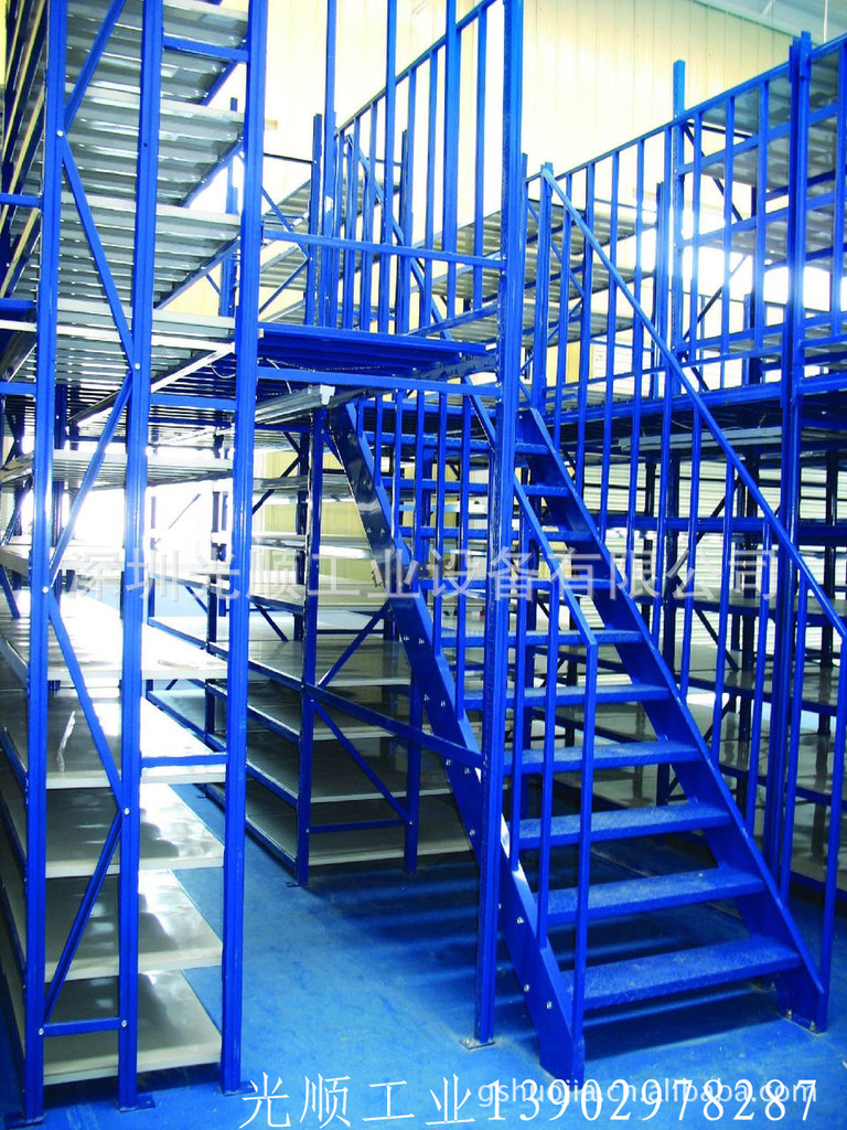 - 阁楼式货架:全组合式结构,可采用木版、花纹板、钢板、等材料做楼板,可灵活设计成二层及多层,适用于五金工具。电子器材,机械零配件等物品的小包装散件储存,存放多品种,少批量货物充分利用空间。