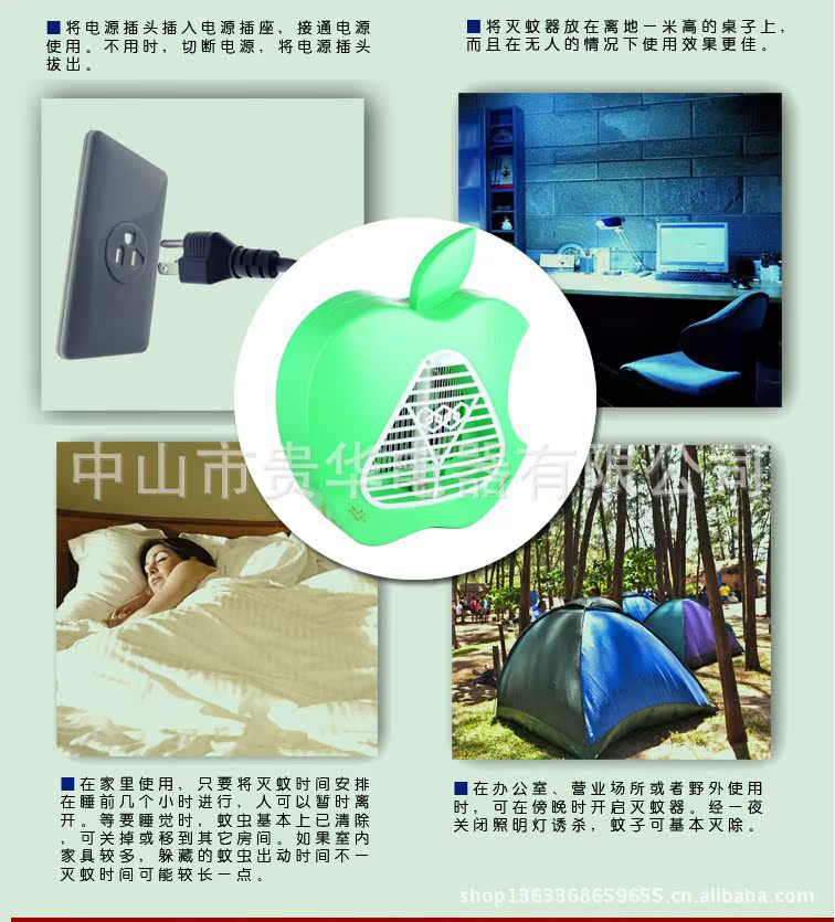 *方便、可靠:直接接上电源即可使用,。且打开前罩,吸蚊网不带电,安全清洁。