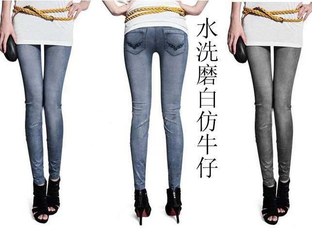 质量佳 春秋韩版弹力大码磨白仿牛仔打底裤紧身显瘦小脚裤