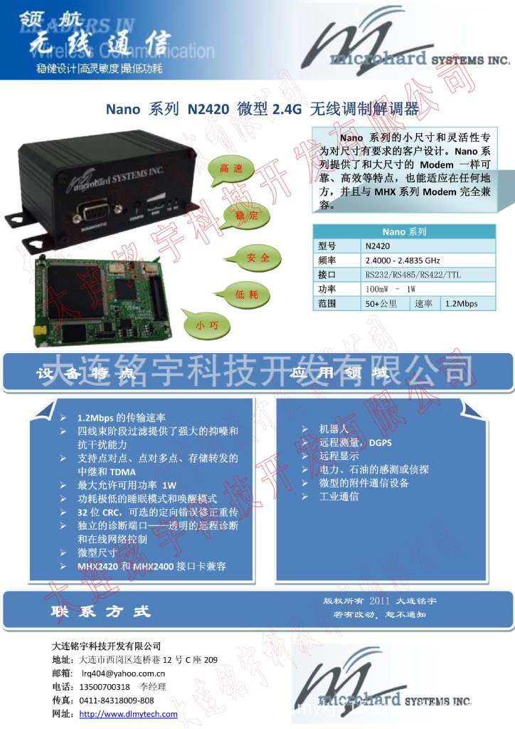 Nano 系列的小尺寸和灵活性专为对尺寸有要求的客户设计。Nano系列提供了和大尺寸的Modem一样可靠、高效等特点,也能适应在任何地方,并且与MHX系列Modem完全兼容。