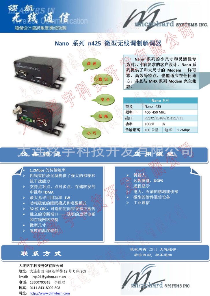 Nano 系列的小尺寸和灵活性专为对尺寸有要求的客户设计。Nano系列提供了和大尺寸的Modem一样可靠、高效等特点,也能适应在任何地方,并且与MHX系列Modem完全兼容。
