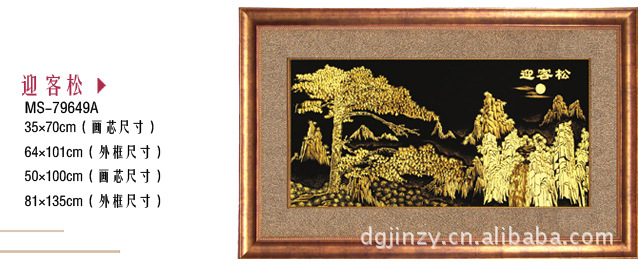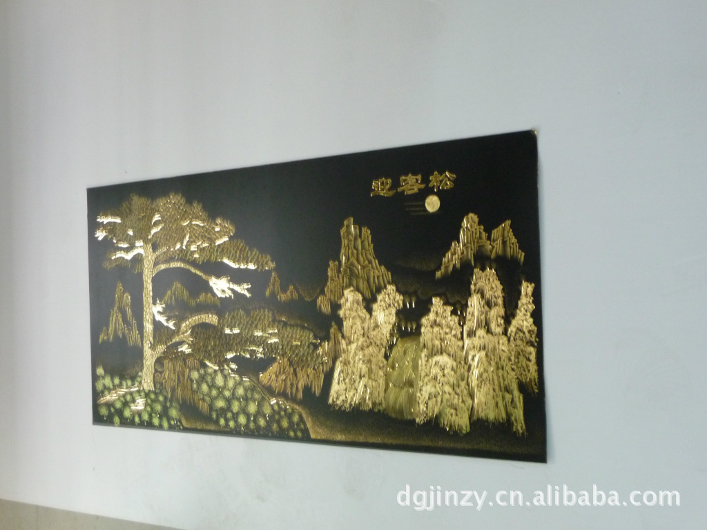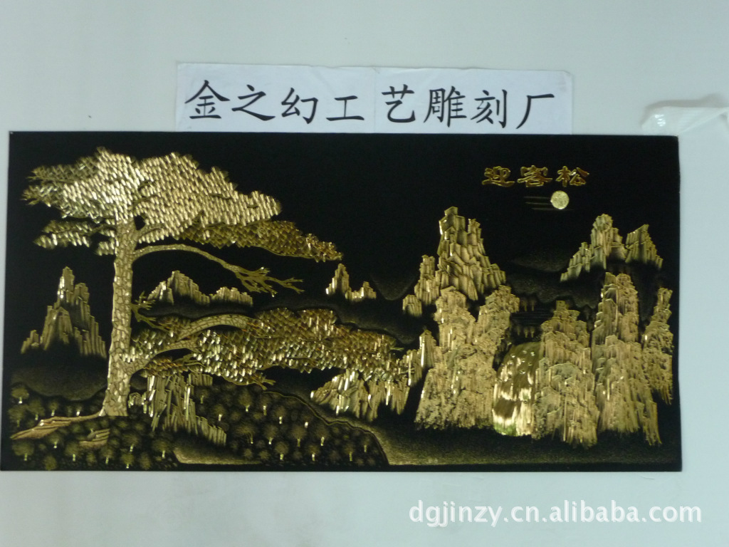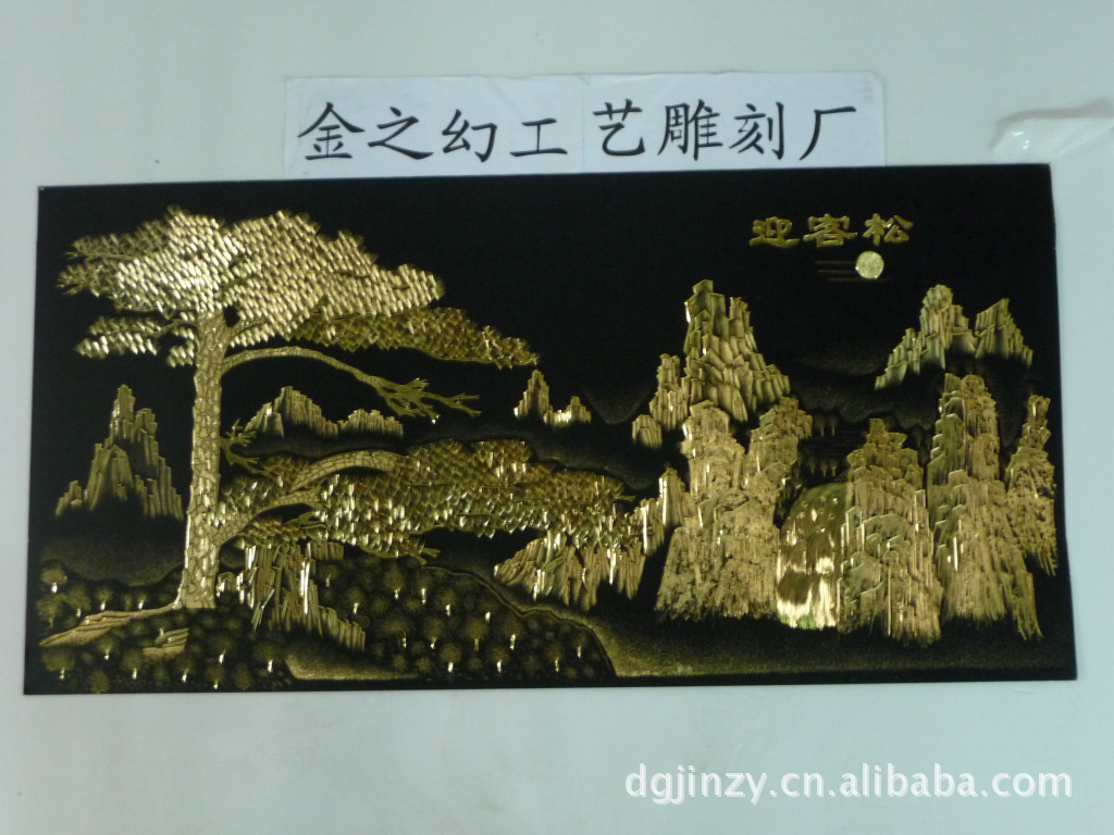 厂家直销东莞[金之幻]纯手工金雕画,客厅装饰画-迎客松