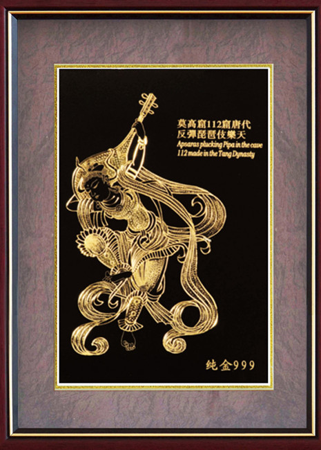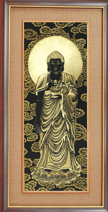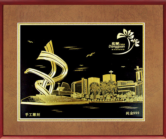 金画(手工雕刻铜板金画)是一种以刀代笔在铜板表面经过推、锤、钻、挑、扭等多种手工技法,雕刻成画。我们将它的刀纹用独特的方法,披覆了一层24K(999纯金)真金保护膜,因而刀纹的金色光泽与底色形成高度反差,并且随视角的不同和光线的变化,表现出非常独特的视觉效果,给您增添无限审美情趣,并且它独有的点、线、面的表现方式,也令您赏心悦目。金画工艺装饰画,其手工雕刻和24K真金的恒久保证,以及独特的表现手法,是目前工艺品中绝无仅有的,使其及具馈赠、纪念及收藏价值。